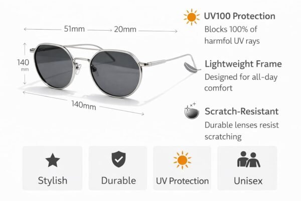Polarized square sunglasses designed to reduce glare and protect eyes from sunlight. Stylish design suitable for everyday outdoor activities.