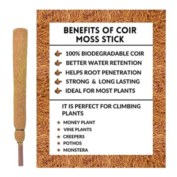 A moss stick is an easy-to-use yet powerful plant support that replicates the natural habitat of climbing plants. As the plant climbs higher, it aids aerial roots in attaching and absorbing moisture. It is constructed from a robust core covered in coir or moss. For plants like monstera, philodendron, pothos, and other vining or climbing species, moss sticks are perfect. They promote better development, stronger stems, and bigger leaves. A moss stick is a practical and aesthetically pleasing addition to indoor plant care for both novice and expert gardeners worldwide. It is simple to install, reusable, and maintains plants upright and aesthetically tidy.
