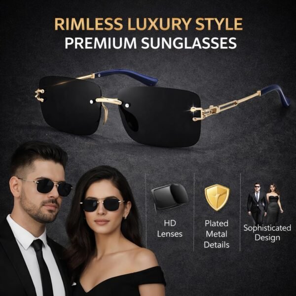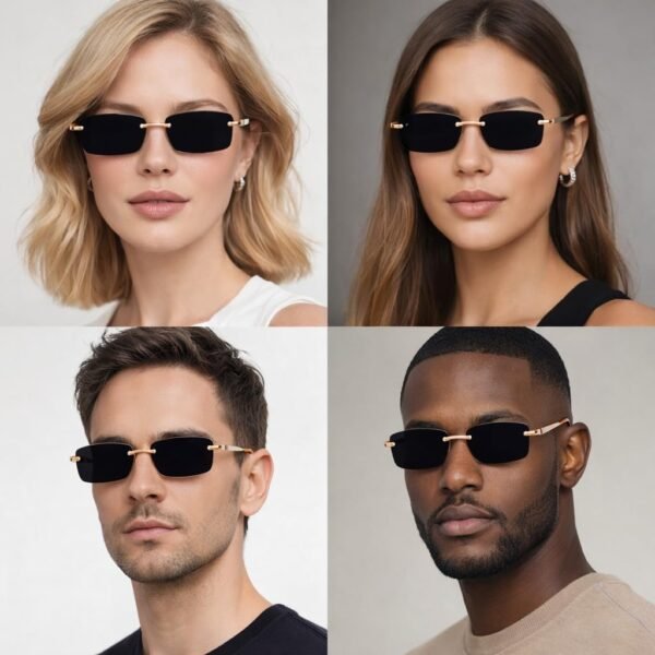 Rimless sunglasses designed to provide modern style and UV protection. Lightweight frame ensures comfortable wear outdoors.