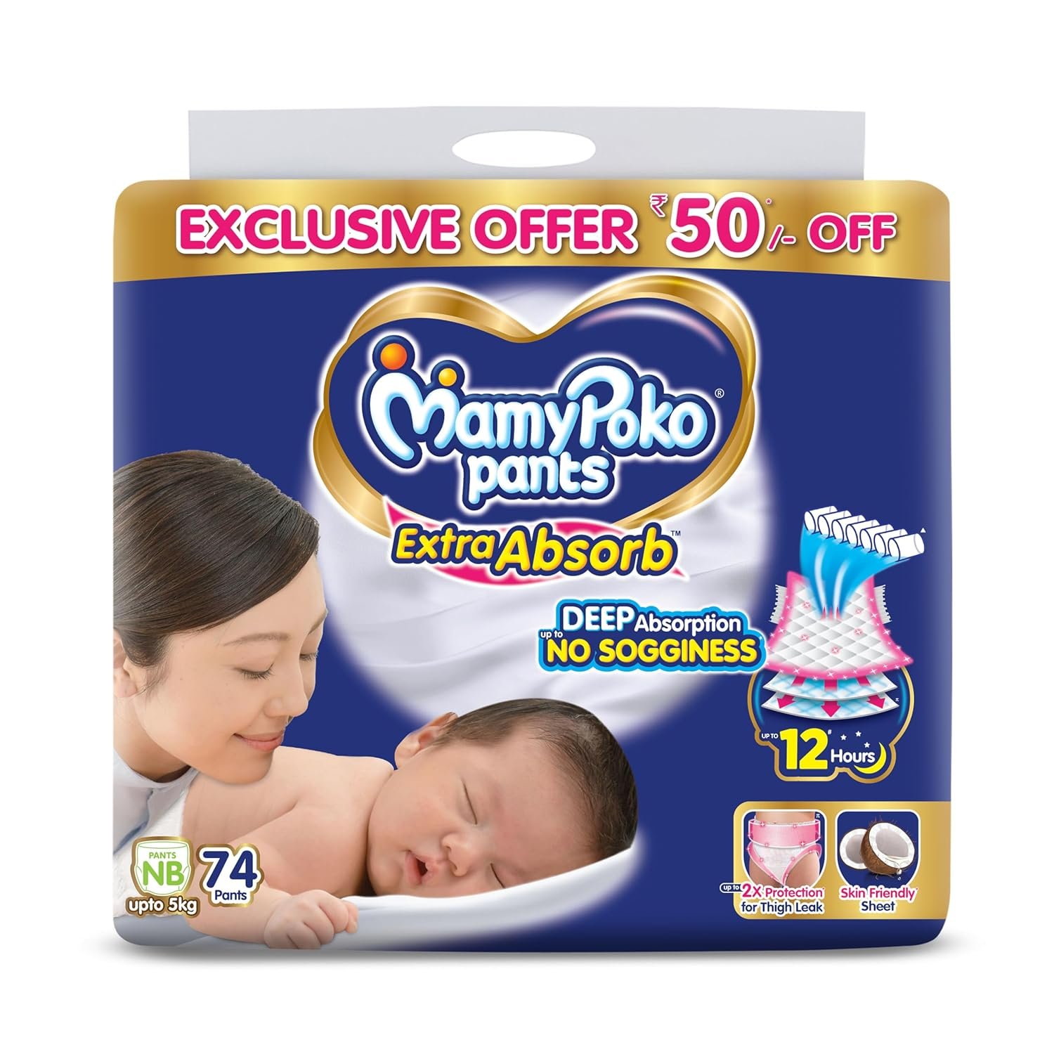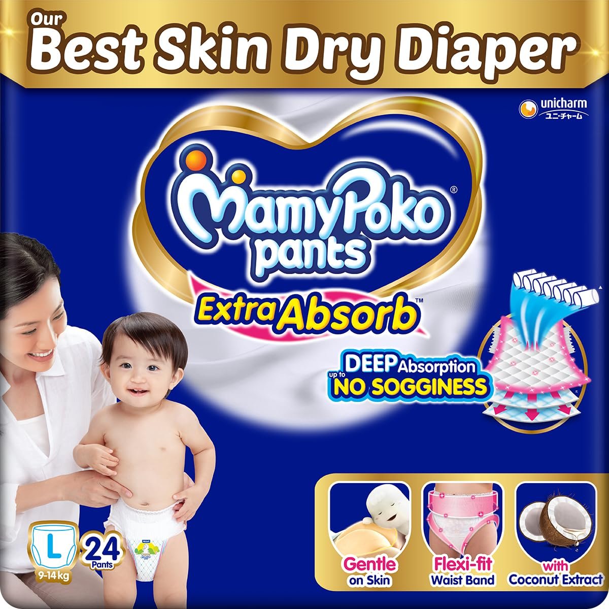 Our first Deep Sleep Diaper with deep absorption and no sogginess keeps baby’s skin dry for long hours. Enriched with coconut extracts and a soft Flexi Fit waistband, it offers ultimate skin safety and uninterrupted deep sleep.